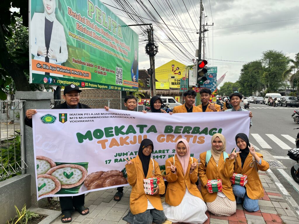 YOGYAKARTA – Semangat berbagi di bulan suci Ramadan ditunjukkan oleh para kader Ikatan Pelajar Muhammadiyah (IPM) MTs Muhammadiyah Karangkajen. Pada Jumat (6/3/2026) sore, mereka menggelar kegiatan sosial bertajuk “IPM Berbagi” dengan membagikan ratusan paket takjil kepada masyarakat.
