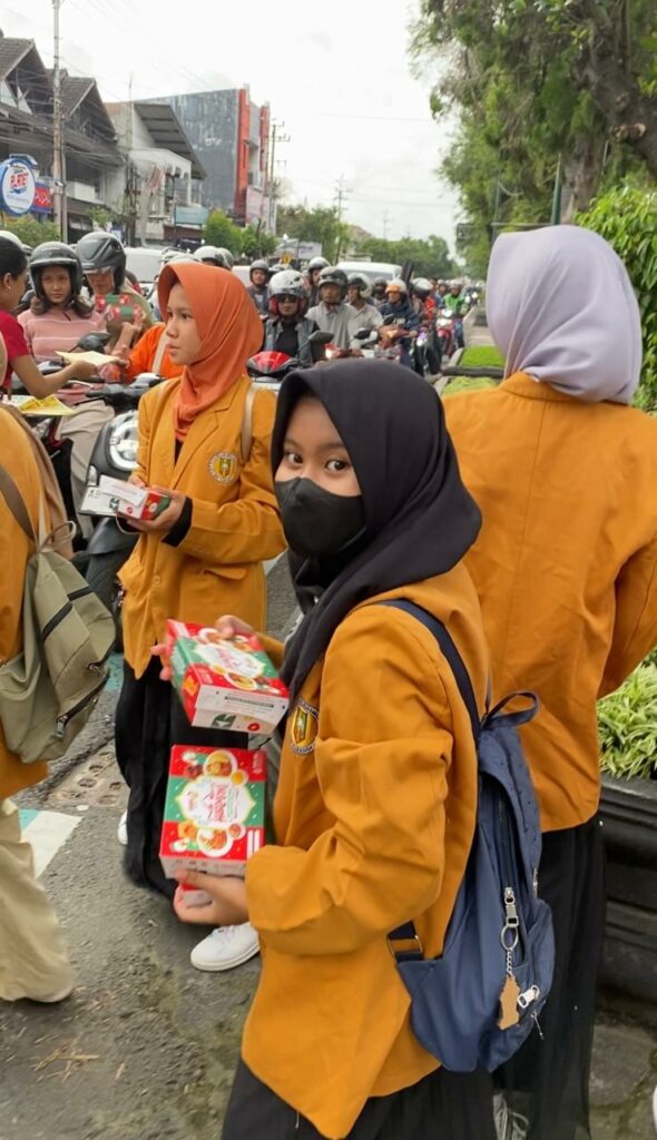 Para siswa yang tergabung dalam pengurus IPM tampak antusias membagikan takjil kepada masyarakat. Dengan penuh semangat, mereka menyapa para pengguna jalan sambil menyerahkan paket takjil sebagai bekal berbuka puasa.